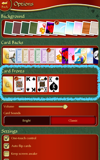 The Card Front options will let you choose between a number of variations - different people find different of the choices more visible, so you will have to decide for yourself by tapping on the one you prefer.